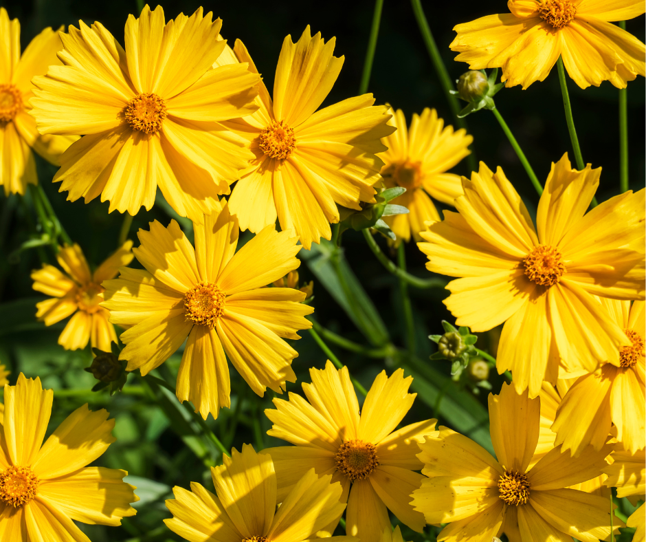 Field Thistle (Cirsium discolor) Coreopsis (Coreopsis grandiflora) Purple Coneflower (Echinacea purpurea) Dense Blazing Star (Liatris spicata) Obedient Plant (Physostegia virginiana) Frostweed (Verbesena virginica)
